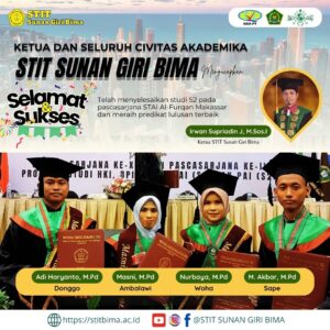 Makassar, 26 Oktober 2024 – Dalam acara wisuda pascasarjana yang berlangsung meriah di Hotel Dalton-Makassar, empat mahasiswa (Muhammad Akbar, M.Pd, Adi Haryanto, M.Pd, Nurbaya, M.Pd dan Masni, M.Pd) delegasi dari Sekolah Tinggi Ilmu Tarbiyah (STIT) Sunan Giri Bima berhasil meraih prestasi gemilang. Mereka berhasil meraih predikat terbaik di antara puluhan wisudawan lainnya.
